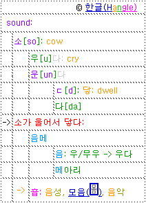 개인적 견해로서, 엔글과 한글 사이에 뭔가 일맥상통한 면이 내비치기에 이렇게... |