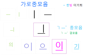 가로모음 '으'에 <띠모음>이 상/하/우에 붙어 발음되는 모음이다. |